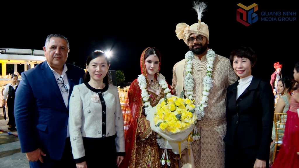 Руководство Департамента культуры, спорта и туризма Куангниня поздравляет индийскую пару миллиардеров, выбравшую FLC Ha Long для проведения свадебной церемонии.