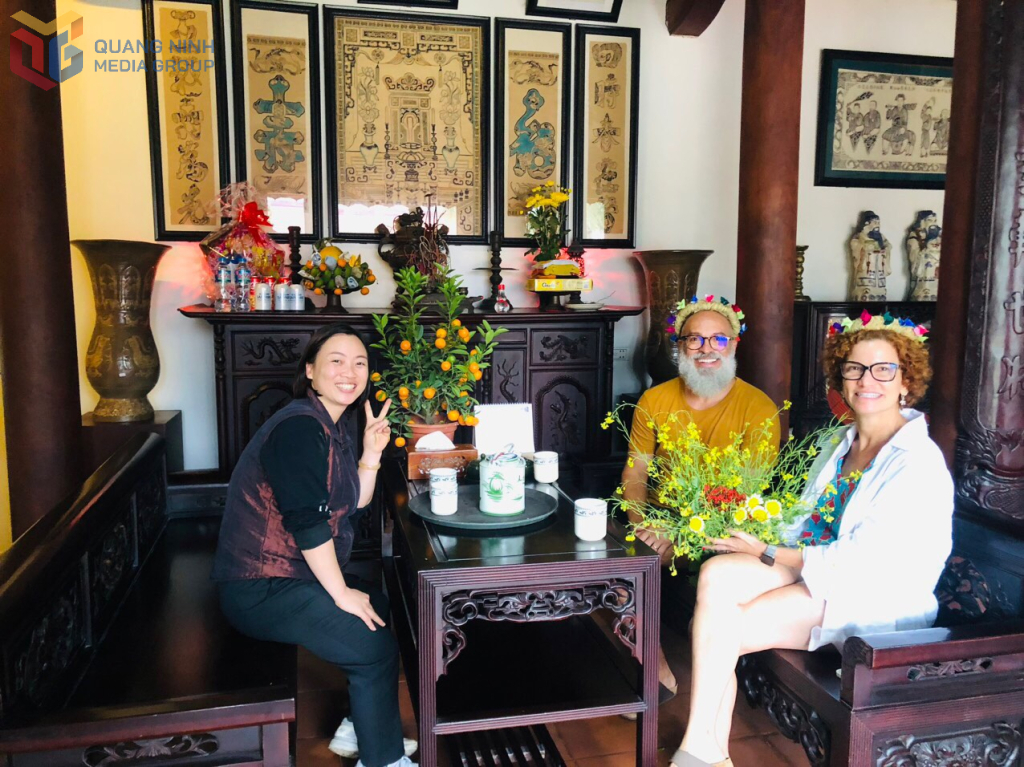 Иностранные туристы знакомятся с бытом в традиционном доме в туристической зоне деревни Йен Дык (район Хоанг Куэ).