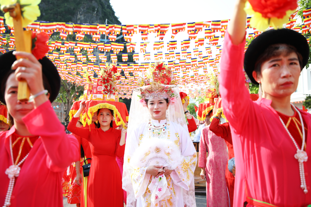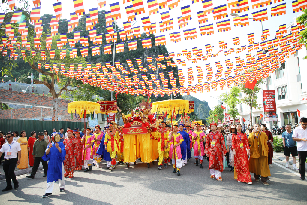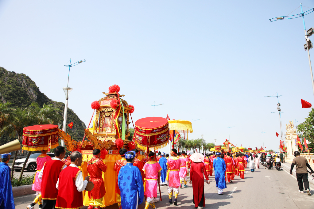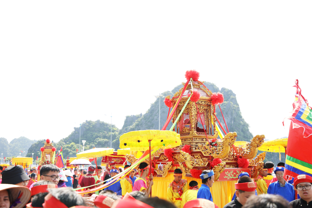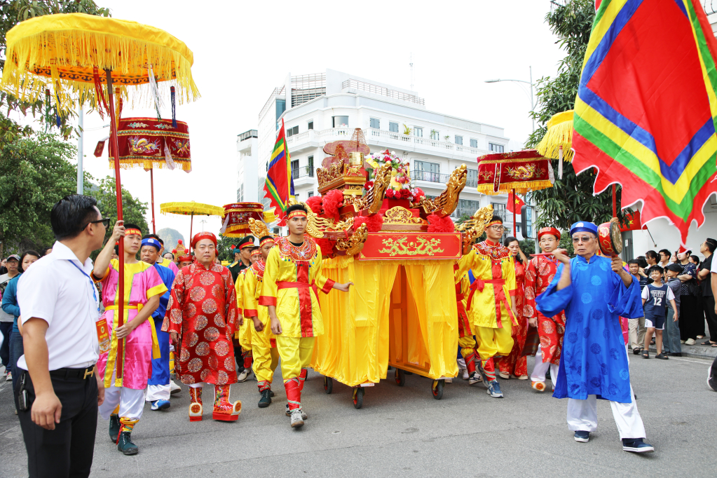Партийный комитет, власти, жители квартала Хонггай и множество туристов присутствуют на церемонии процессии Дык Онга.